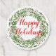 Klassischer "Happy Holidays" Grußwunsch auf rustikalen grünen Lorbeerkranz Blätter motif. Mit der Möglichkeit, Ihren Familiennamen und (begrenzten) Text Ihrer Wahl anzupassen oder zu personalisieren.