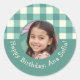 Benutzerdefinierter Foto Name Kariert Gingham Gebu Runder Aufkleber