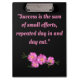 Foto-Text Oleo Skript Schriftart Pink Blume Zwischenablage "Erfolg ist die Summe der kleinen Anstrengungen, wiederholt Tag in und Tag aus." Erfolg ist nicht ein Ereignis, sondern eine Reise. Diese Clipboards sind sehr nützlich für die Schule, Uni Schüler, wenn es Prüfungen kommt, können sie es für Pad verwenden, um ihre Prüfungen zu schreiben. Es ist nützlich für Office, Business, Schule, Uni und so weiter.