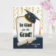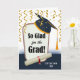 Herzlichen Glückwunsch zu Abschluss Custom Front Grußkarte. Fügen Sie dem Cover den Namen des Absolventen hinzu. Feierlichkeiten Thema mit goldfarbenen Bänder und Konfetti, umhülltes Diplom, Schild auf Papier, und Mörtel Graduation Cap. Art, Bild und Vers Copyright © Shoaff Ballanger Studios, 2022.