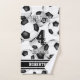 Wählen Sie Ihre eigenen Farben! Dieses Handtuch für einen Fußballspieler im Teamgeist zeichnet sich durch den leicht zu personalisierenden Namen des Athleten und die Jersey-Nummer sowie den Namen des Teams und des Maskottchens aus, die das Hintergrundbild einer Reihe zufällig arrangierter Fußballbälle auf weißem Hintergrund überdecken. Die Fußbälle werden selektiv schattiert, um ihnen ein 3D-Aussehen zu verleihen. Der Name des Athleten kann auf waagerechten schwarzen Farbstreifen am unteren Ende des Handtuches personalisiert werden. Passen Sie Text und Farbstreifen an, um den Farben der Fußballmannschaft oder den Lieblingsfarben eines Athleten zu entsprechen. Drücken Sie die Taste "Design bearbeiten" oben, um auf das Zazzle-Designwerkzeug zuzugreifen, mit dem Sie die Hintergrundfarbe, die Farbe der verschiedenen Streifen und alle Textfarben ändern können - von katz_d_zynes
