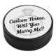 Stell die Frage auf eine kühne und unvergessliche Weise mit diesem anpassbaren Hockey-Puck mit einem Verlobungsring-Design und personalisiertem Text. Die Standardnachricht lautet „Willst du mich heiraten?“, aber aller Text kann geändert werden, was dies zu einer kreativen Idee für Heiratsanträge für Hockey-Fans und Sportliebhaber macht.