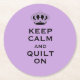 Behalt Calm und Quilt On populäres Sprichwort in schwarzer Typografie Schrift wird auf diesem Set von sechs wisteria lavender 4"x4" runden Untersetzer vorgestellt. Ändern Sie das Wort 'quilt' in ein beliebiges anderes Wort, um es mithilfe der bereitgestellten Vorlage zu Ihrem eigenen zu machen. Wählen Sie aus vielen anderen Formen. Streng, dauerhaft und absorbierend; lebhafter, einseitiger Vollfarbendruck. Weitere Informationen finden Sie unter "Über dieses Produkt" an der Seite. HOHE Bewertungen.