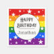 Geburtstagsfeier für Homosexuelle, personalisierbare Servietten aus Regenbogenpapier mit Namen.