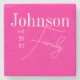 Benutzerdefinierter moderner Familienname Hot Pink Steinuntersetzer