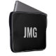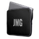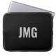 Sie können das silberne Monogramm personalisieren, das sich in der Mitte dieses schwarzen Laptop-Ärmels befindet.