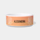 Verwöhnen Sie Ihr Haustier mit dieser Schüssel-Design mit einem orangefarbenen und rosafarbenen Hintergrund mit weißen Muscheln und dem Namen Ihres Haustieres. Füllen Sie das Vorlagenfeld mit dem Namen Ihres Tieres aus. Eine tolle Geschenkidee für einen neuen Besitzer.