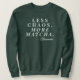 Personalisiertes Sweatshirt mit dem Namen einer schicken und wohltuenden Mama, die Lieben mit einem Matcha-Tee trinken. Einfaches minimalistisches monochromatisches Design mit erstklassigem Look. Mami verdient und braucht etwas Zeit für sich selbst. Als Mutter treiben und auch als Momente des Friedens Ritual in der Mutterschaft Chaos. "WENIGER CHAOS , MORE MATCHA" vollständig anpassbares typografisches Sprichwort, Satz, lustiges lässiges Zitat für einen Matcha Tee leidenschaftlichen Enthusiast. Das gesunde, trendige grüne Getränk gewinnt heute an Beliebtheit. Der individuelle Name ist wie eine Signatur, in handgeschriebener Skriptkalligrafie. Ein modisches und dennoch komfortables Outfit für Sie oder als nachdenkliches personalisiertes Geschenk für eine andere Mami aus Ihrer Mama-Freundesgruppe. Geburtstag, Weihnachten oder Muttertag Geschenk oder Freundschaft Geschenk nur weil. Mutterschaft, elegantes und cooles Wohlbefinden wie Gewohnheiten können und sollten nebeneinander bestehen. Sogar ein kleines Geschenk für eine Mama, in einer Babydusche, neben den Geschenken für das Baby. Ein Sondergeschenk unter 35 Dollar für sie, Mutter.