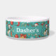 Diese Schüssel ist eine blaugrüne Hommage an das schwanzwedelnde Weihnachtschaos – verpackte Geschenke, Zuckerrohre und Hunde in Schals wirbeln herum wie die Träume Ihres Haustieres, das Weihnachtsessen zu stehlen, alles zentriert auf ihren Namen, als wären sie der CEO des festlichen Schlemmens.