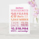 Personalisierte „Du bist seit 20 Jahren geliebt worden“-Geburtstagskarte mit Meilenstein-Zahlen—Jahre, Monate, Wochen, Tage, Stunden und Minuten. Fügen Sie den Namen des Empfängers für eine persönliche Note hinzu und bearbeiten Sie die Innennachricht, um sie zu Ihrer eigenen zu machen. Eine einzigartige, herzliche Geburtstagskarte, perfekt für die Feier zum 20. Geburtstag.