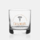 Dieses maßgeschneiderte Medizinstudium Abschluss Whiskey Glasgeschenk bietet moderne orange Typografie für eine Klasse von 2024 Absolventen. Passen Sie mit Ihrem geschlossen Jahr unter dem Caduceus für große personalisierte Krankenschwester oder Arzt zu halten.