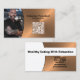 Imitate haben Kupferkabelkarten-Sets aus dem Hintergrund dieses Visitenkartendesigns mit einem Platzhalter für Fotos auf der links Seite mit Vorlagenname und -titel auf der rechten Seite herausgerissen. Die Rückseite beinhaltet ein abgestimmtes Design und Farben mit Textfeldern für den Firmennamen und Details. Ersetzen Sie das Platzhalter-Foto durch Ihr Bild im vertikalen Format und ersetzen Sie den QR-Code durch das entsprechende Bild. Füllen Sie die Vorlagenfelder aus, oder klicken Sie auf Anpassen, um einen Schriftart auszuwählen, der Stil, die Größe und die Farbe, die Ihnen gefällt.Das Foto für Platzhalter ist freundlich pexels.com.