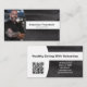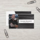 Schwarze Leder-Sets im Hintergrund dieses Visitenkartendesigns, mit einem Platzhalter für Fotos auf der links mit Vorlagenname und Titel auf der rechten Seite. Die Rückseite beinhaltet ein abgestimmtes Design und Farben mit Textfeldern für den Firmennamen und Details. Ersetzen Sie das Platzhalter-Foto durch Ihr Bild im vertikalen Format und ersetzen Sie den QR-Code durch das entsprechende Bild. Füllen Sie die Vorlagenfelder aus, oder klicken Sie auf Anpassen, um einen Schriftart auszuwählen, der Stil, die Größe und die Farbe, die Ihnen gefällt.Das Foto für Platzhalter ist freundlich pexels.com.