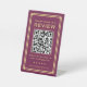 Dieses stilvolle Tabletop-Schild ermutigt die Kunden zu Rezensionen und bietet einen einfachen, kontaktlosen Zugang zu Ihrer Rezensionssite. Das Design besticht durch klassische Typografie und eine schlichte Deko-Grenze. Personalisieren Sie die Vorlage mit einem QR-Code und der Website-Adresse. Sie können die Hintergrundfarbe auch mit dem Editor anpassen. Dieses Schild ist ideal für eine Vielzahl von Geschäften, darunter Restaurants, Cafés, Bars, Läden, Salons und mehr! Bedruckte Farben: tiefrosa Pflaume und goldene Farbe.