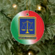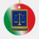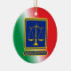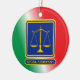 Dieses Weihnachtsgeschmuck ist auf einer Seite mit dem Schild des Rechtsbeistands verziert. Die Rückseite ist mit einem Bild des Weihnachtsmannes mit seinen Goodies-Taschen dekoriert und kann mit Namen, Daten, etc. angepasst werden.