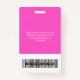 Dieses Abzeichen für den benutzerdefinierten Mitarbeiternamen kann einfach mit Foto, Scan-Bar und Firmenlogo personalisiert werden. Ein einfaches Business-Design in niedlichen und hübschen fuchsienrosa und weißen Farbtönen, die in Vorder- und Rückengrößen vollständig anpassbar sind, serifenlose, einfache und moderne Schriftart und ein berufliches und klares Aussehen. Erhältlich mit Lanyard, Metallklammer oder mit Retraktikett. Keine Mindestbestellung.