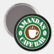 Kundenspezifischer runder Café Bar Logo-Magnet für Kaffeeliebhaber. Personalisierte Kühlschrankmagnet mit Namen, Firmenlogo oder anderem Text. Kaffeebohnen und Silhouette. Niedliche Geburtstag Geschenkidee für Freunde, Familie, Bista etc. Auch praktisch für Shops, Geschäfte, Geschäfte etc.
