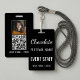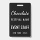 Benutzerdefinierter Schokoladenfestival-Foto-QR-Code-Mitarbeiter-Ausweis mit einem eleganten Schwarz-Weiß-Design. Ideal für Festivalmitarbeiter, Freiwillige und Crew, die eine klare Kennzeichnung bei Schokoladenveranstaltungen, Food-Festivals und Messen benötigen. Personalisiert für die professionelle Veranstaltungsnutzung.
