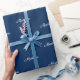 Benutzerdefinierter Skriptname Text blau weiß Geburtstag Geschenkpapier. weißer Text, marineblauer Hintergrund