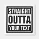 Benutzerdefinierte, RICHTIGE OUTTA-Kühlschrankmagnete. Quadrat. Mach deinen eigenen Löffel. Das Design der Typografie mit den großen Buchstaben. Fügen Sie Ihre eigene Stadt, Parodie oder Zitat zu diesem Template / Meme Generator. Niedliche Accessoires für Damen, Herren und Teenager. Coole personalisierte Beispiele: Direkt am Bett. Direkt vor Geld. Direkt über Ideen. Direkter Kaffee. Direkt im Gefängnis. Direkt zum Fitnessraum. City names; compton chicago new york LA boston brooklyn.