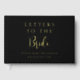 Personalisierte Briefe an den Bride Gold Foil Lettern elegante "Briefe an die Braut". Ein schöner Sake in einfachem Gold und Schwarz mit elegantem, elegantem Styling-Text und Schriftzeichen-Kalligraphie-Typografie. Personalisieren Sie das Brautparty, indem Sie den Namen der Braut und das Datum des Bräunens hinzufügen. Im hinteren Teil des Buches ist Platz, um ein eigenes Zitat oder Sprichwort für die Braut hinzuzufügen. Perfekt als Geschenk von den Brautmeistern oder für ein Brautparty Gästebuch. Machen Sie auch ein großartiges Scrapbook für die Braut zu Schatz immer.