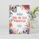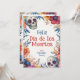 Die "Eternal Celebration" Dia de Muertos Flachgrüßkarte weist eine lebhafte und farbenfrohe Grenze auf, die sich aus traditionellen Elementen wie dekorierten Schädeln, den so genannten Calaveras, zusammensetzt, und aus einer Reihe von Blume, die das festliche Gefühl des Designs noch verstärken. Der zentrale Teil der Karte ist für einen anpassbaren Textbereich reserviert, der derzeit "Feliz Día de Muertos" in fett ausliest. stilisierte Schrift oben, gefolgt von "von [individuelle Name]" unten, wo "Fernandez Family" derzeit untergebracht ist; dies zeigt an, dass der Name des Absenders personalisiert werden kann; der Hintergrund hinter diesem Text scheint eine schlichte weiße Farbe zu sein, die mit dem blühenden Rahmen kontrastiert, sodass sich jede hinzugefügte benutzerdefinierte Nachricht deutlich bemerkbar macht; die Kartenrückseite bietet Platz für eine benutzerdefinierte Nachricht und denselben blumen-gemusterten Hintergrund als die Vorderseite, die ein konsistentes und festliches Design während der gesamten.