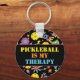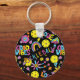 Sweet schwarzer doppelseitiger Keyring mit Groovy, Retro-Pickleball-Muster im 90er-Stil mit gelben Pickleballs und schwarzem Hintergrund.
