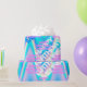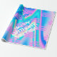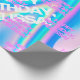 Individuelle Name oder Text Holographic Iridescent Y2K Modern Birthday Party Wrapping Paper mit Ihrer personalisierten Typografie auf abstraktem Regenbogenhintergrund in leuchtenden Neonfarben, sehr auffällig Design.
