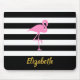 Benutzerdefinierter Text rosa Flamingo auf Schwarz Mousepad