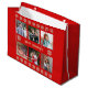 Laden Sie sechs Ihrer Lieblings-Fotos hoch, und sie werden sowohl auf der Vorder- als auch auf der Rückseite dieser tiefen, roten Geschenktasche erscheinen. Der Text ist bearbeitbar - und Sie können eine andere Beschriftung auf der Vorder- und Rückseite haben. Der Standardtext lautet einfach "Happy Christmas" und "For Oma". Zwei Bänder von stilisierten Poinsettia-Blume verleihen der Winterdekoration eine zusätzliche Note. [Platzhalter-Fotos © Storytree Studios, Stanford, CA]
