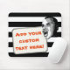 Was hast du im Sinn? Fügen Sie Ihre Anweisung auf diesem benutzerdefinierten Mauspad hinzu! Digital verändertes Foto eines jungen Mannes, der seinen Text auf einem weißen rechteckigen Etikett schrie. Hintergrund ist schwarze Streifen in jeder Farbe - Sie können den Abstand zwischen den Streifen neu färben, indem Sie die Produkte Grundfarbe! Alle Texte können einfach angepasst und neu positioniert werden. Auch Schriftart, Größe und Farbe können angepasst werden.