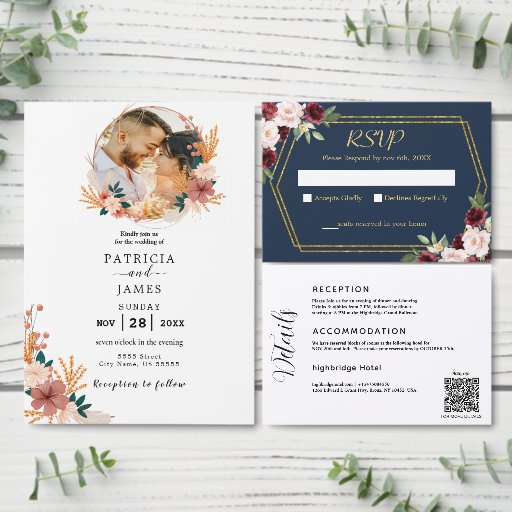 Die moderne Boho Floral Wildblume Wedding Dankeschön Card ist mit einem 2-Foto und handbemalter Aquarellblume ausgestattet. Die Veranstaltungsdetails sind in einer Mischung aus klassischer Serifentypografie und eleganter Schriftzeichen-Handschrift verfasst. Ideal für Frühjahr-, Sommer-, Herbst- und Winterhochzeiten Sie können die Formulierung mit den Vorlagenboxen rechts vom Design ändern, oder Sie können auf "Bearbeiten mit dem Design-Tool" klicken, um auf fortgeschrittene Änderungen zuzugreifen. Ändern Sie Schriftartes, Farben, Platzierung, Größe und mehr. Es gibt keine Mindestbestellmenge.
