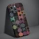 Schöne, zeitgenössische dunkelbraune, beige Taupe, aquamarin blau, dunkelrosa, rostorange und olivgrün gefärbte geometrische Kreise und Halbkreise Muster auf schwarzem Hintergrund. Mit der Option, um mit einem Namen Monogramm oder Initialen Ihrer Wahl anpassen oder personalisieren. Verziertes, elegantes, stilvolles und eklektisches Design für die extravagante künstlerische Mode, die künstlerische Modediva, den beliebten angesagten Trendsetter, den Vintagen Retro-Kunststil und den abstrakten, geometrischen Motiv-Liebhaber. Dieses Design ist erhältlich in Apple iPhone 6, 7, und 8 Plus, 10 oder X, XR, XS, 11, 12, 13 Mini, 14, 15 Plus, und Pro Max Handy Hüllen. Zeigen Sie Ihren Stil, sehen Sie in der Mode und fühlen Sie sich stilvoll mit einem einzigartigen Design auf einem mobilen Zubehör Ihrer Wahl.
