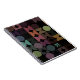 Schöne zeitgenössische dunkelbraune, beige taupe, aquamarin blau, dunkelrosa, rostorange und olivgrün gefärbte geometrische zirkel und halbe zirkel Muster auf einem schwarzen Hintergrund. Mit der Option, um zu personalisieren oder mit einem Namen Monogramm oder Initial Ihrer Wahl. Verziertes, elegantes, stilvolles und eklektisches Design für die extravagante künstlerische Mode, die künstlerische Modediva, den beliebten angesagten Trendsetter, den Vintagen Retro-Kunststil und den abstrakten geometrischen Motiv-Liebhaber. Erhältlich bei einer Vielzahl moderner Büroprodukte. B. Adressetiketten, Verpackungen und Papiertaschentücher, Geschenktaschen, Beutel und Geschenkschachteln, Aufkleber, Bänder, Notebooks, Schreibwaren und Umschläge.
