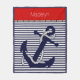 Schöner zeitgenössischer Schiffsanker, auf einem klassischen und schicken marineblau-weiß Streifen Muster. Set mit weißem Seeseil, mit Raum zum Personalisieren oder Anpassen mit Namen, Initialen oder Monogramm Ihrer Wahl, oder jede Art von nautischen Ausdruck wie "Ship Ahoy", "Sail Away", "Anchors Aweigh" oder "Bon Voyage". Erschaffen für den Kapitän, Liebhaber des Urlaubs und Sommer. Für diejenigen, die ihre Master- oder Kinderzimmer, ihr Kinderzimmer, ihr Wohn- oder Familienzimmer, ihre Uni oder ihre Grotte, ihren Wohnraum, ihr Studio oder ihre Wohnung, ihr Strandhaus, ihre Hütte, ihre Login, ihren Liebe- oder Wohnmobil, ihr Boot oder ihre Yacht, ihren See- oder Flussurlaub Zuhause oder ihr Auto dekorieren.