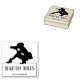 Lady Fotograf maßgeschneiderte Fotografie Gummi Briefmarke. Schönes Logo für berufliche Fotografie mit einer Silhouette-Abbildung eines Fotografen bei der Arbeit. Das Design umfasst zwei Zeilen benutzerdefinierten Text. Größerer Text ist für Ihren Namen gedacht und der kleinere kann Ihre Berufs- oder Kontaktdaten wie Telefonnummer oder Social Media Handle speichern.