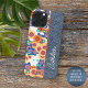 Moderne, helle lila, blaue, grüne, rosa, orangefarbene und rote Blumenmuster auf einem Imitat blauen Jeans denim Hintergrund. Mit Raum zum Anpassen oder Personalisieren mit einem Namen, Monogramm oder Initialen Ihrer Wahl. Schönes, modernes und cooles Cover für den Trend-geschickten und kunstliebenden angesagten Trendsetter, künstlerischer Motif-Liebhaber, der will, ihr Handy vor Staub und Schmutz, Abnutzung und Tränen zu schützen. Dieses Design ist erhältlich in Apple iPhone 6, 7, und 8 Plus, 10 oder X, XR, XS, 11, 12, 13 Mini, 14, 15 Plus, und Pro Max Handy Hüllen. Zeigen Sie Ihren Stil, sehen Sie in der Mode und fühlen Sie sich stilvoll mit einem einzigartigen Design auf einem mobilen Zubehör Ihrer Wahl.