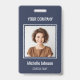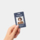 Zeigen Sie Ihrem Team ein berufliches und zeitloses vertikales Abzeichen-Design. Der raffinierte und tiefe Marinehintergrund verleiht dem Mitarbeiter ein gepflegtes Aussehen, das das Foto und die wesentlichen Details elegant umrahmt. Dieses minimalistische und saubere Layout schafft einen beruflichen Eindruck, der sich perfekt für eine einheitliche und erkennbare Corporate Identity eignet.
