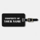 Benutzerdefiniertes Eigentum an Gepäckanhängern. Machen Sie Ihre eigenen lustigen Taschenetiketten für Reisen rund um die Welt. Fügen Sie Ihre eigenen personalisierten Namen oder Monogrammnamen Anfangsbuchstaben hinzu. Vintage Accessoires für Damen und Herren. Anpassbare Hintergrundfarbe. Elegantes, schwarz-weißes Typografie-Design. Stellen Sie Ihren Koffer und Ihr anderes Gepäck auf dem Gepäckgürtel heraus. Mark deine Sachen für den Flughafen.