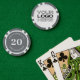 Personalisierte Poker-Spielchips mit eigenem Firmenlogo und eigenem Text. Dieses graue Design enthält die Zahl 20, kann aber mit beliebiger Menge bearbeitet werden.