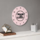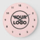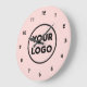 Benutzerdefiniertes Firmenlogo auf korallrosa Hint Große Wanduhr