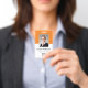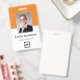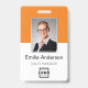 Personalisieren Sie diesen benutzerdefinierten orangefarbenen Mitarbeiternamen und Foto-Abzeichen einfach mit Ihrem Firmenlogo und qr-Code oder Bar-Code. Erhältlich mit verschiedenen Hintergrundfarben und Anbaugeräten. Keine Mindestbestellmenge.