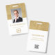 Personalisieren Sie diesen individuellen goldenen Mitarbeiternamen und das Foto-Abzeichen einfach mit Ihrem Firmenlogo und qr-Code oder Bar-Code. Erhältlich mit verschiedenen Hintergrundfarben und Anbaugeräten. Keine Mindestbestellmenge.