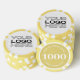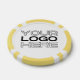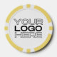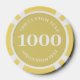 Personalisierte Poker-Spielchips mit eigenem Firmenlogo und eigenem Text. Dieses gelbe Design enthält die Nummer 1000, kann aber mit beliebigem Wertebetrag bearbeitet werden.