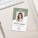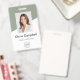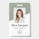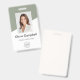 Dieses auffallende vertikale Badge-Design verwendet eine kühne diagonale Trennung zwischen Sage-Grün und knackigem Weiß für eine dynamische, zeitgemäße Note. Das Layout zeigt perfekt das Foto des Mitarbeiters im oberen Abschnitt, während Name, Titel und Ihr Logo darunter sauber dargestellt werden. Diese künstlerische Verwendung von negativem Raum schafft ein einprägsames und sehr professionelles Badge, das hervorsticht.