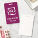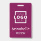 Dieses Badge-Design bietet maximale Markenwirkung mit einem luxuriösen, allumfassenden Feld aus reichhaltigem, tiefem Magenta. Das Layout betont einen sauberen, monochromen Stil, bei dem Ihr Firmenlogo und der Name des Mitarbeiters in auffallendem Weißkontrast prominent dargestellt werden. Diese fortschrittliche, einfarbige Farbpalette sorgt dafür, dass Ihre Identität sofort sichtbar ist und ein starkes, Premium-Unternehmensimage vermittelt.
