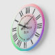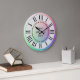 Das Kunstwerk verkörpert raffinierte Eleganz und eine minimalistische Ästhetik, mit zwölf römischen Zeichentrickstundenmarkern vor einem skurrilen, sanften, pastellfarbenen, regenbogenfarbenen Hintergrund. Diese individuell angepasste Wanduhr umfasst zentrale Platzhalter, die ideal für die Aufnahme eines Firmenlogos, einer Typografie für den Firmennamen, einen Slogan oder gegebenenfalls für die Kernwerte konzipiert sind. Für spezielle Anfragen oder Fragen wenden Sie sich bitte an den Künstler unter wafadahdalcreates@gmail.com. © Wafa Y. Dahdal - Alle Rechte vorbehalten. WD Art