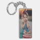 Ein maßgeschneiderter rechteckiger Schlüsselanhänger mit doppelseitigen Fotos.