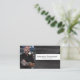 Schwarze Leder-Sets im Hintergrund dieses Visitenkartendesigns, mit einem Platzhalter für Fotos auf der links mit Vorlagenname und Titel auf der rechten Seite. Die Rückseite beinhaltet ein abgestimmtes Design und Farben mit Textfeldern für den Firmennamen und Details. Ersetzen Sie das Platzhalter-Foto durch das Bild im vertikalen Format. Füllen Sie die Vorlagenfelder aus, oder klicken Sie auf Anpassen, um einen Schriftart auszuwählen, der Stil, die Größe und die Farbe, die Ihnen gefällt.Das Foto für Platzhalter ist freundlich pexels.com.