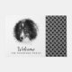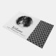 Benutzerdefinierte Vorlage für das Heimtierfoto in Schwarz-Weiß-Farben. Ersetzen Sie das Beispielbild durch ein Foto Ihres eigenen Tieres und personalisieren Sie die Textbereiche mit Ihrem eigenen Text. Ein Teil des Designs zeigt ein Muster von schwarzen Hundepads auf grauem Hintergrund. Das benutzerdefinierte Foto wird durch eine runde Form angezeigt, die jedem Bild einen ungleichmäßigen, weichen Rand verleiht.